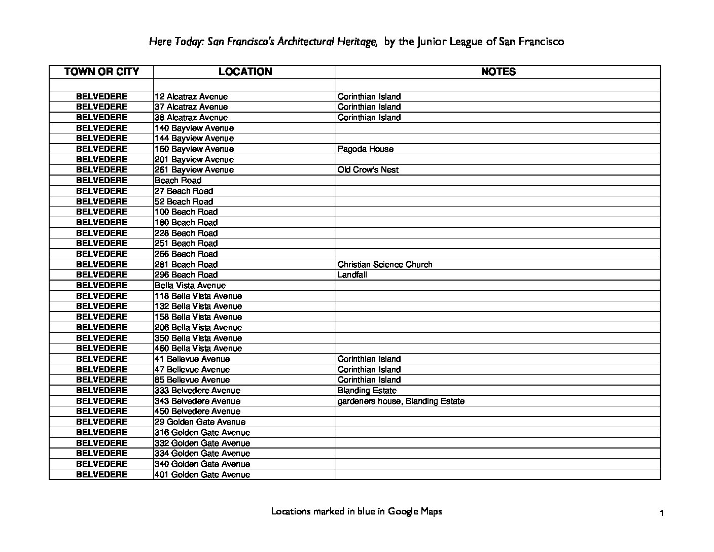 Junior League Marin Historic Homes index