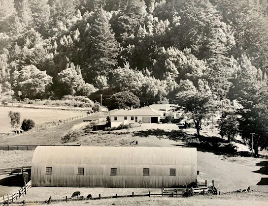 In the early 1940s, Umberto purchased 1400 acres of ranch land near Olema and remodeled the family home there. He and Helen then acquired an additional 1000 acres in the San Geronimo Valley near present-day Lagunitas. The Borello home still stands near the intersection of Wild Iris Dr. and Sir Francis Drake Blvd. which can be seen in the image background. In 1951, they sold their Olema cattle and dairy ranch to Ernest Kettenhoffen of Novato for $140,000. Their son, Robert purchased another 860-acre ranch on Tomales Bay north of Pt. Reyes in 1958 where he and his wife Judy raised sheep and operated a quarry.