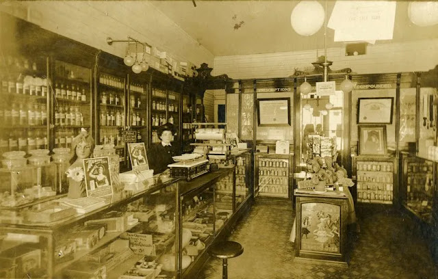Rose Shapira seen in her Marin pharmacy, circa 1917.