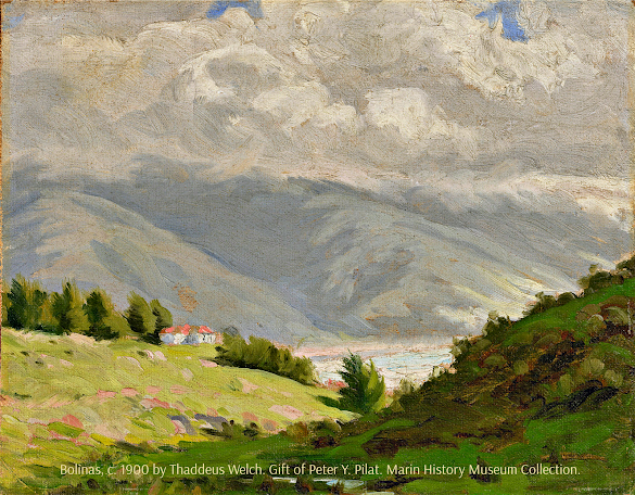 Upon Thaddeus’ death, the SF Chronicle proclaimed: “It is through the work of Welch that the country surrounding Mount Tamalpais became famous throughout the United States.” Ludmilla continued to paint landscapes, with special interest in old adobes, until her death six years later. Today, a small grove of calla lilies is all that marks the location of their cabin in the woods.